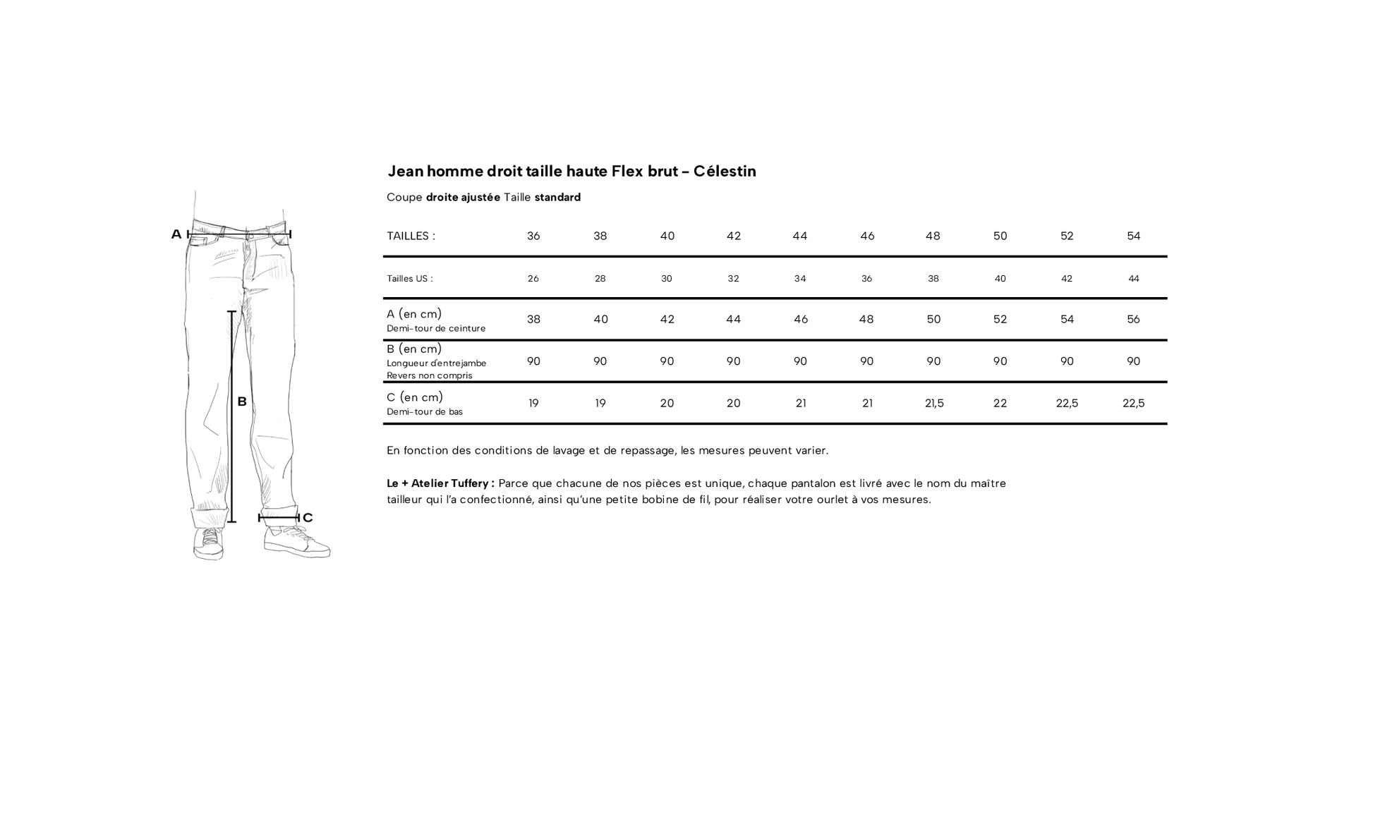 Un doute sur la taille ? Contactez le service client Atelier Tuffery (+33 (0)4 66 45 00 94, formulaire de contact ici ou Messenger) pour être guidé.