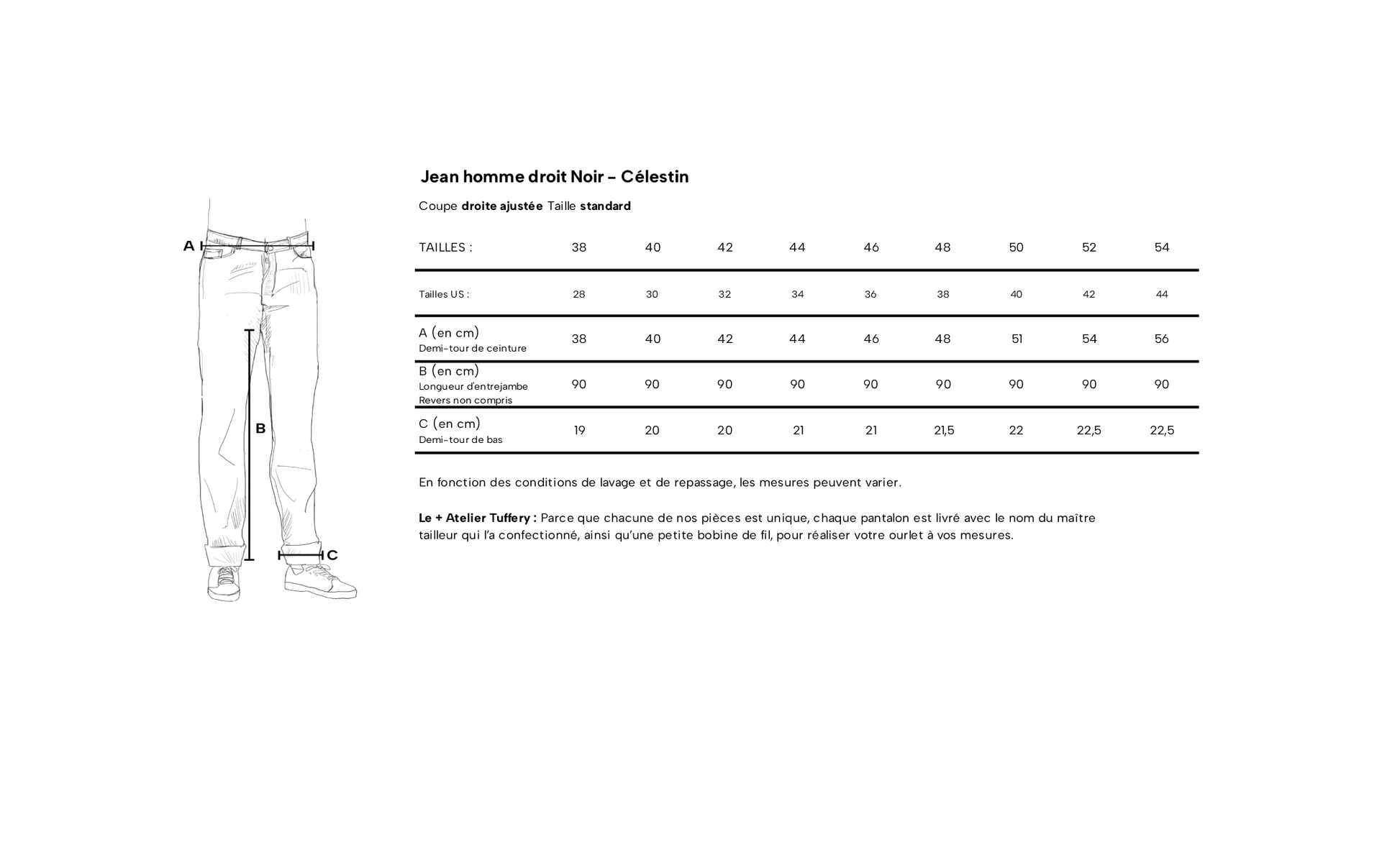 Célestin est la coupe classique d’Atelier Tuffery. Avec une coupe droite et une taille haute, c’est le modèle historique de la maison, le véritable blue jeans vintage.