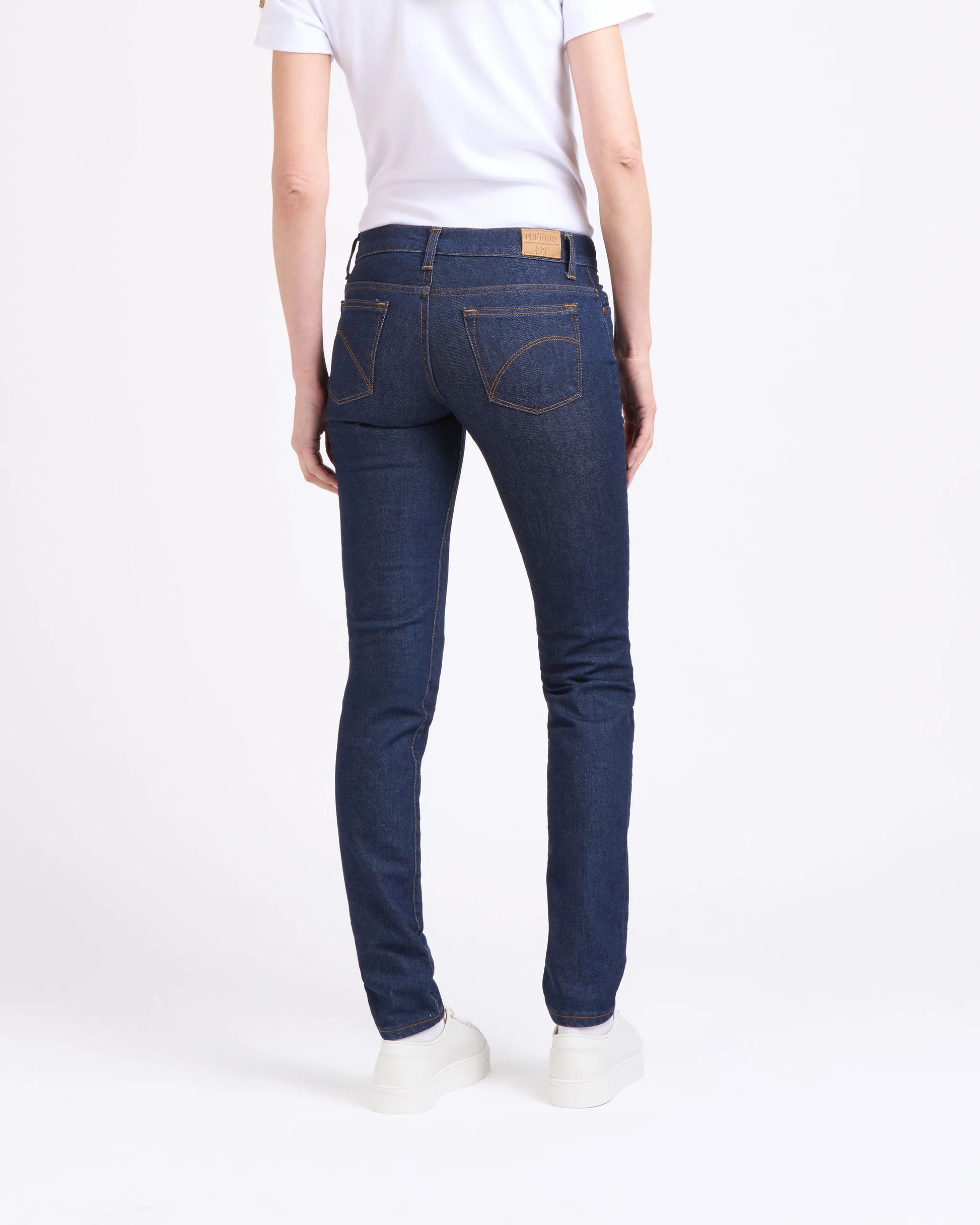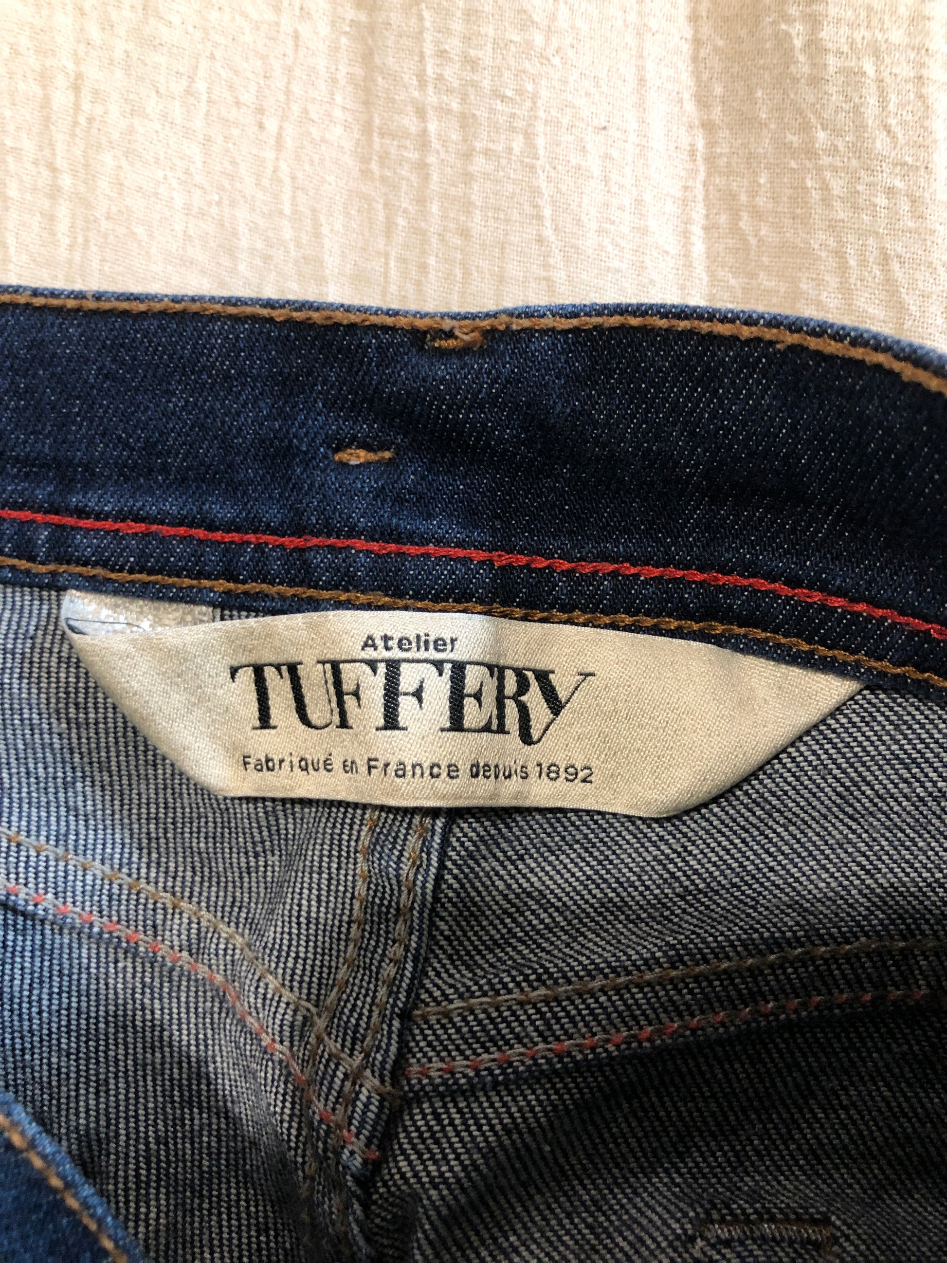 Mathilde est la coupe slim d’Atelier TUFFERY, avec une taille basse modérée. Très féminin, en authentique toile denim, légèrement stretch pour le confort, ce modèle est agrémenté de surpiqûres rouges.